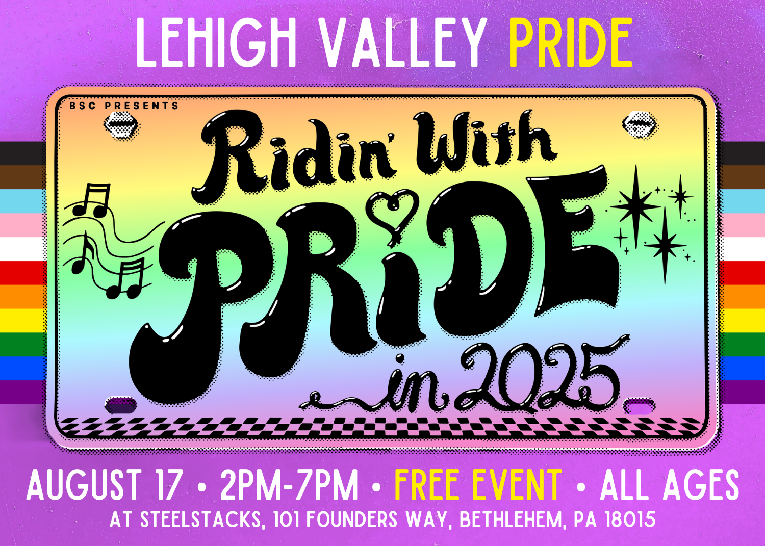 WHEN: Sunday, August 17 from 2:00 p.m. to 7:00 p.m. Lehigh Valley Pride will be celebrating Rain or Shine