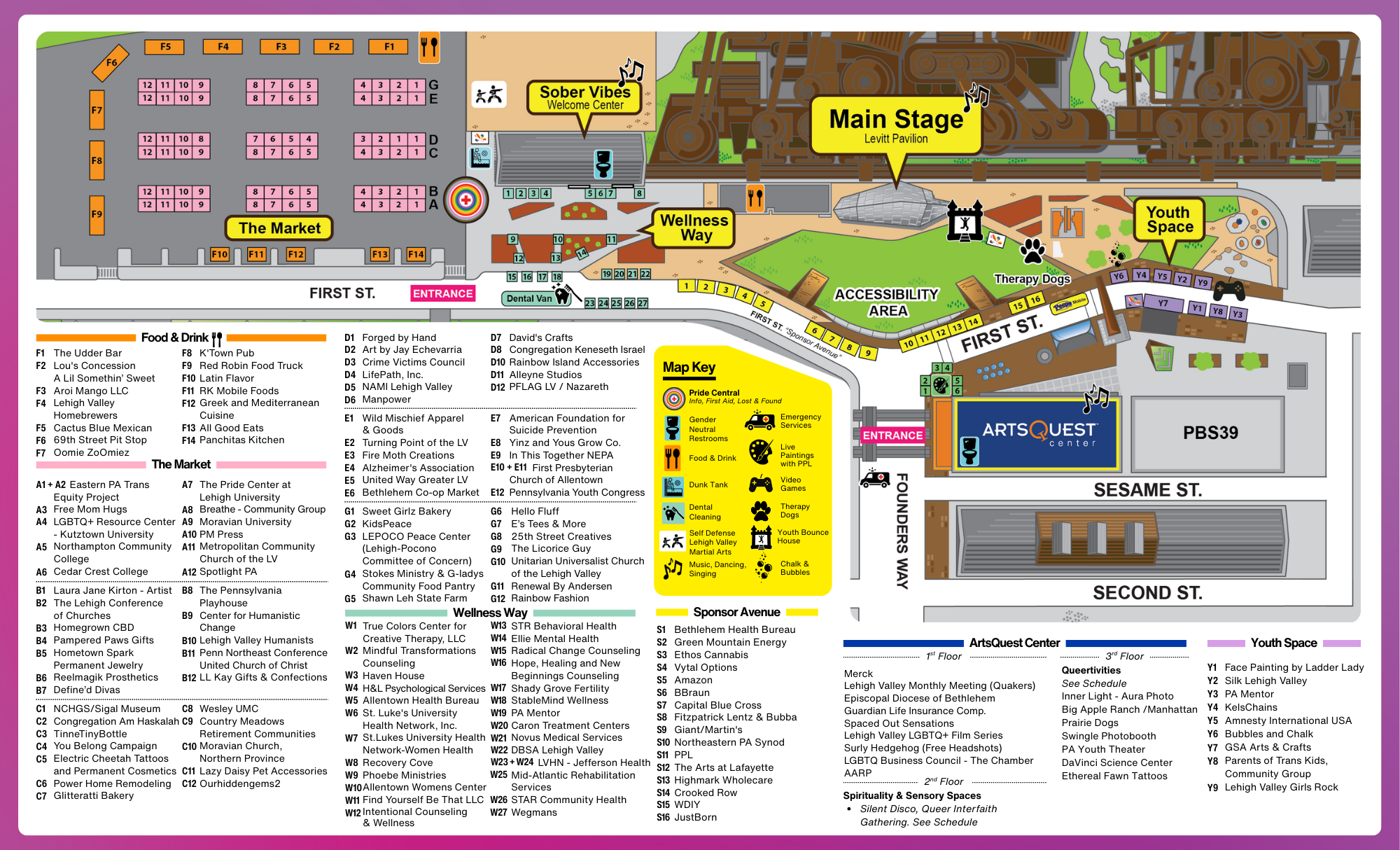 The event at the SteelStacks will include accessibility features such as free entry, ASL interpreters, ADA restrooms, large-print Pride guides, alcohol-free experiences, indoor air conditioned spaces, accessible seating for those with disabilities, indoor sensory-friendly area, spirituality space, and reserved parking near the festival entrances.